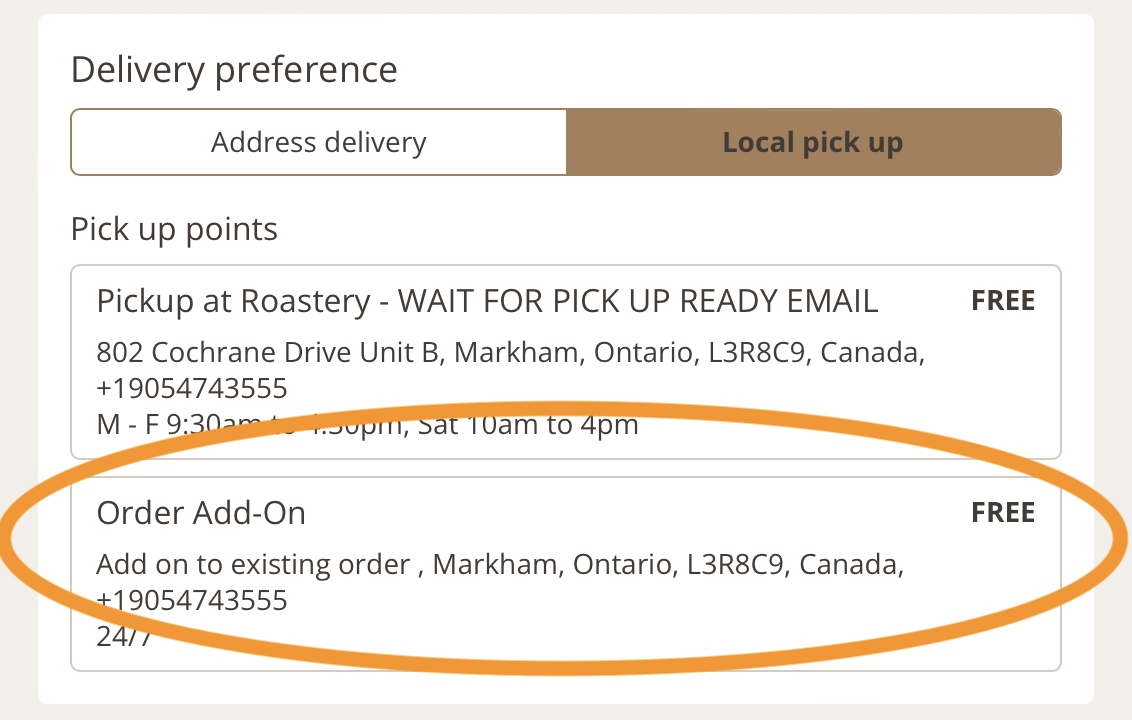 Select local pick up --> add-on option: